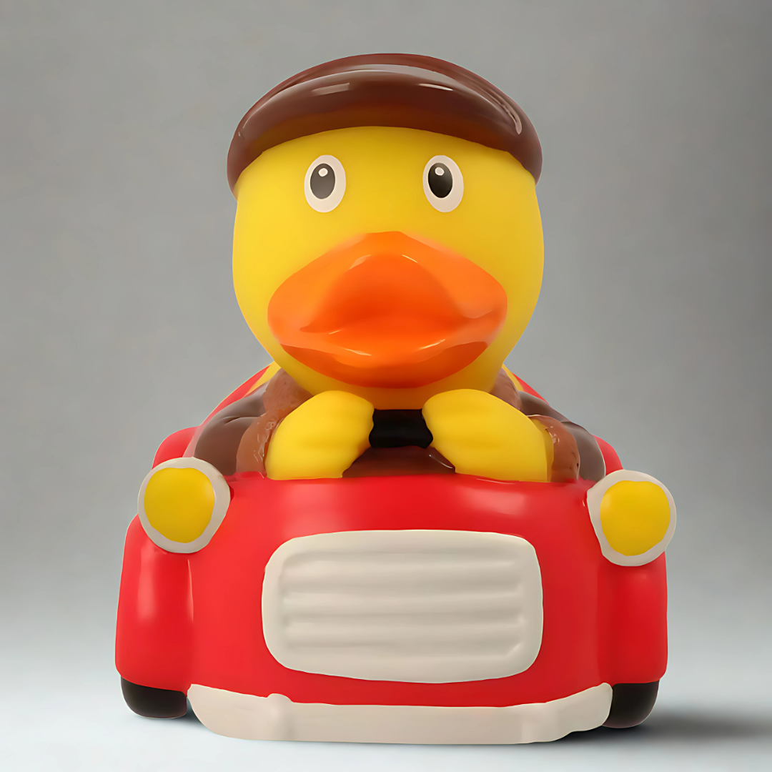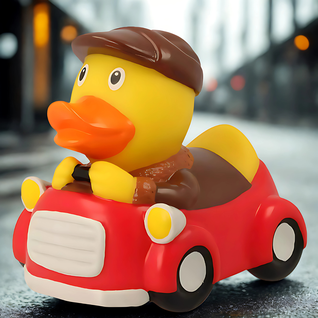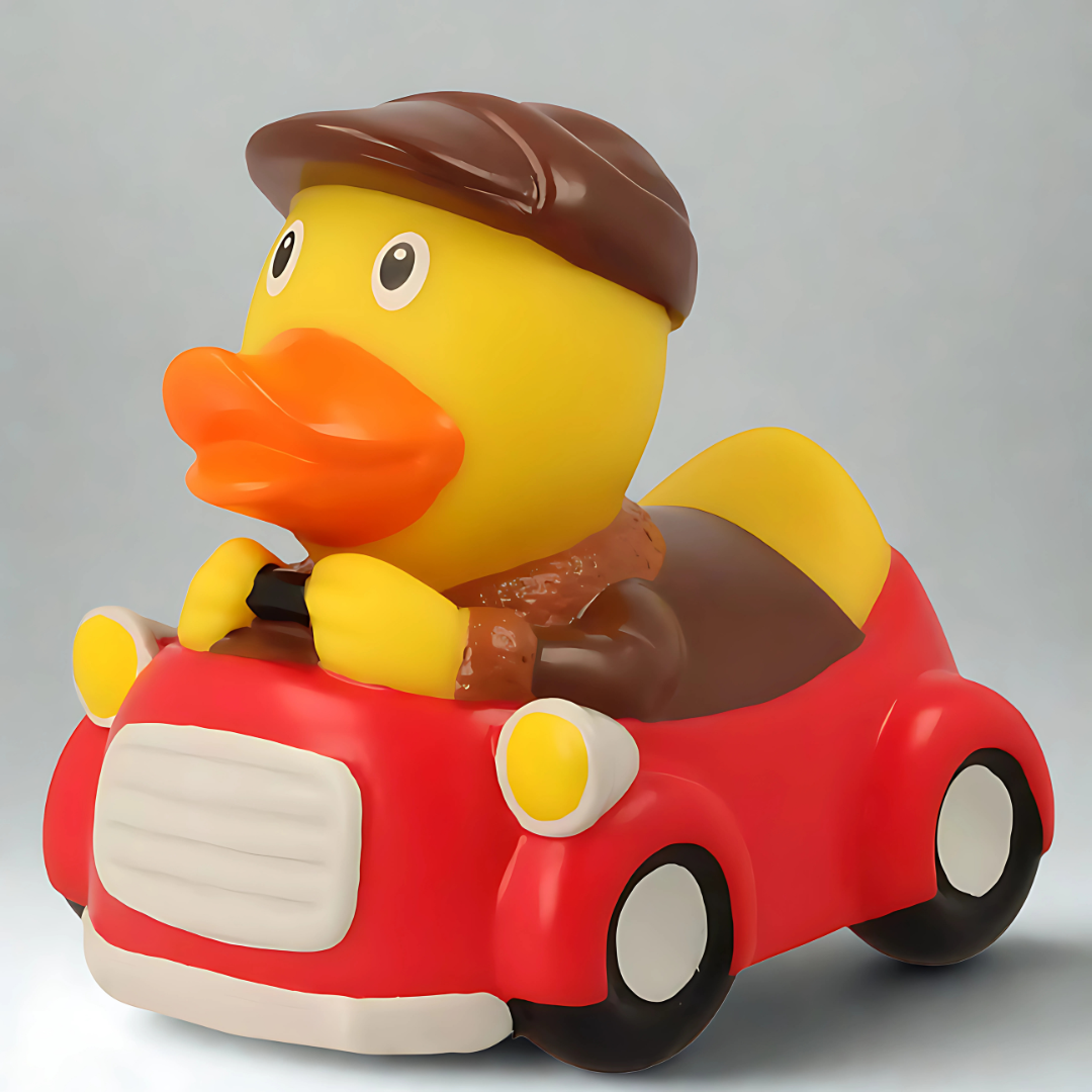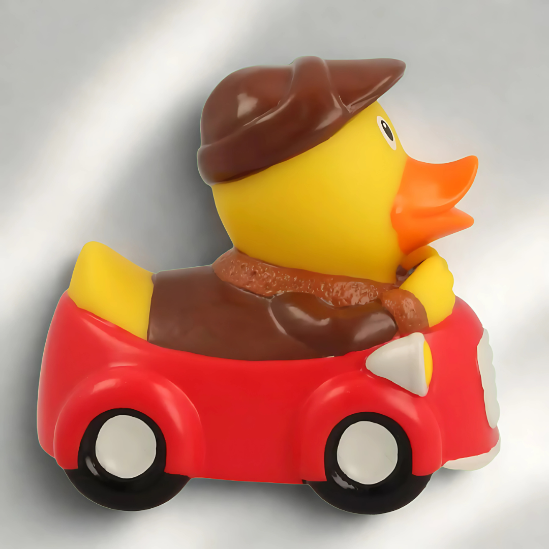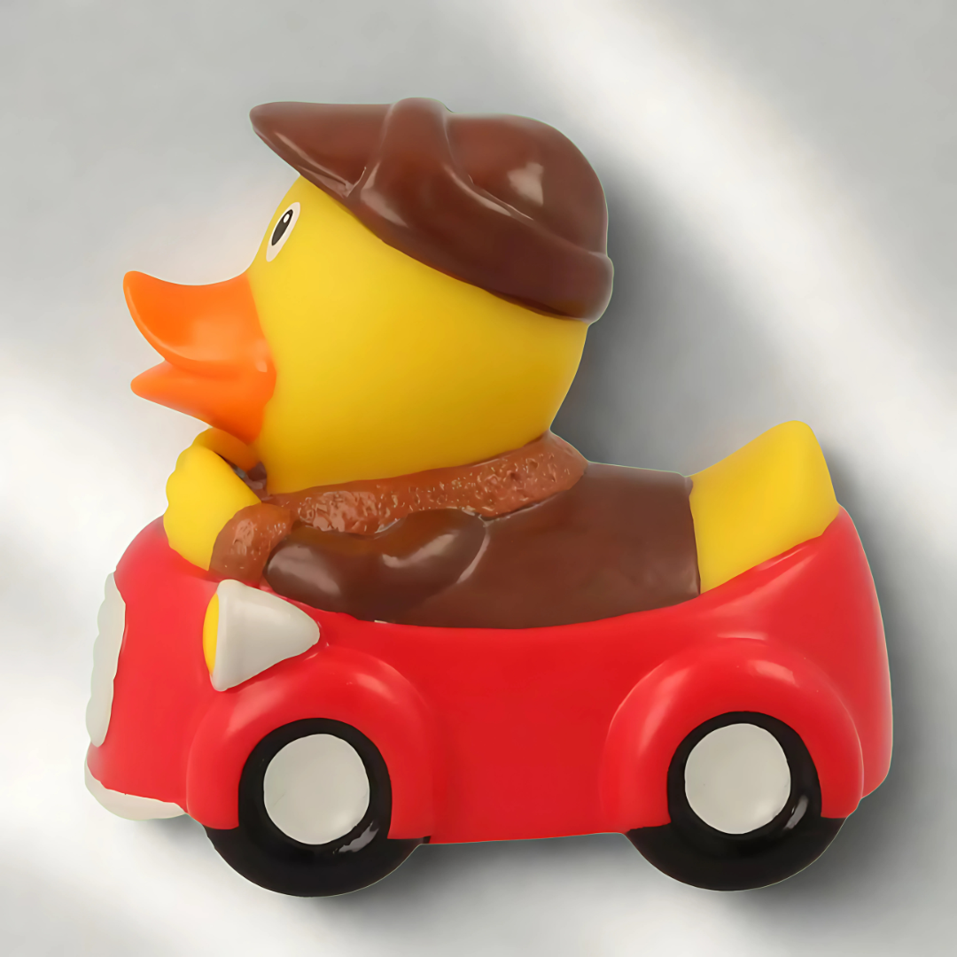 Buckle up for adventure with the Car Driver Duck! This duck is in the driver's seat of a sleek, red car that's part of his very essence, ready to zoom into your bath time with speed and style. Perfect for car enthusiasts and collectors alike, this rubber duck combines the thrill of the drive with the joy of bath time play. A great gift for those who love both ducks and cars, it promises to rev up the fun and bring a touch of excitement to any collection.