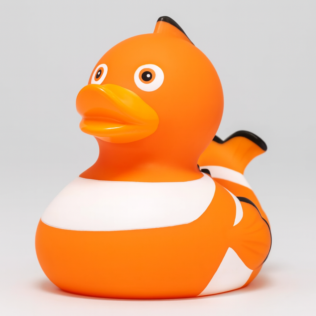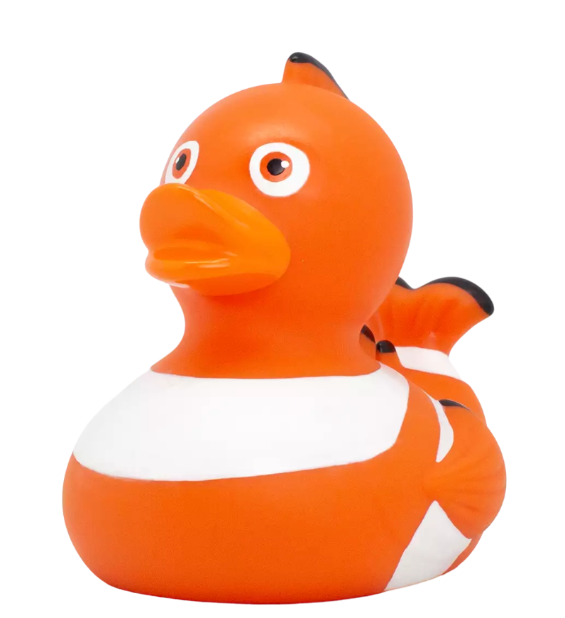 Dive into fun bath-time adventures with our Clown Fish Rubber Duck! This charming little bath buddy features the signature vibrant orange and white stripes of a clownfish, paired with a sweet, smiling face that’s ready to swim through imaginary coral reefs. Made from high-quality, durable rubber, this duck is designed to float gracefully on the water, inspiring kids and adults alike to "just keep swimming" through their daily routines. Perfect for bath time, pool play, or as a quirky addition to your collection, this Clown Fish Rubber Duck will bring a splash of joy to any water-loving fan!