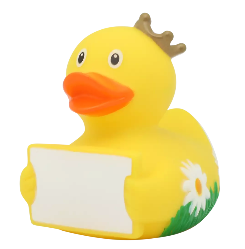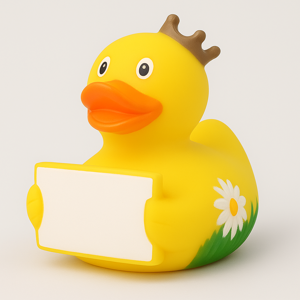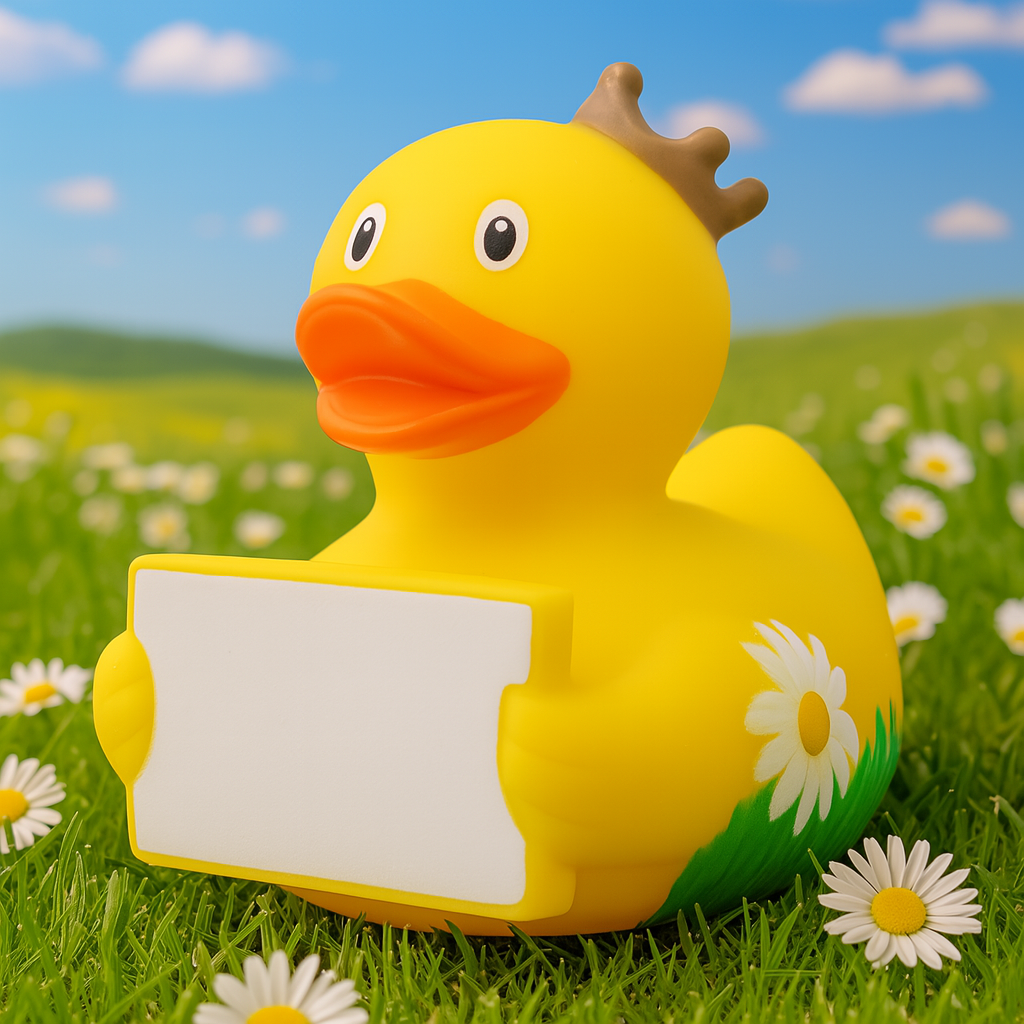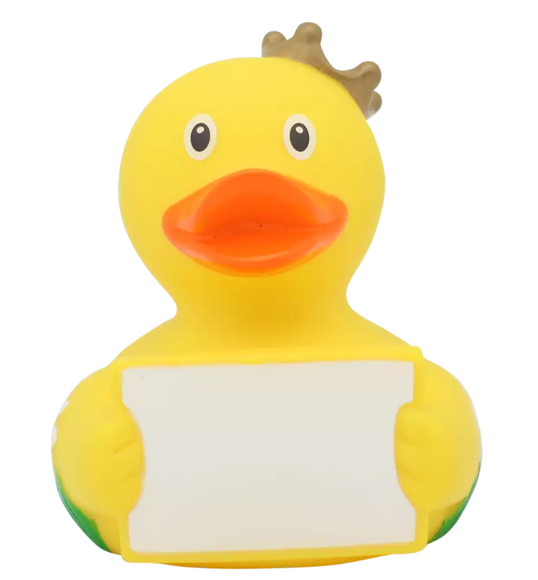 Say it with a quack! This adorable rubber duck comes equipped with a customisable sign, making it the perfect way to deliver a message. So go ahead, make a splash with your words and let this duck do the talking (or waddling) for you!