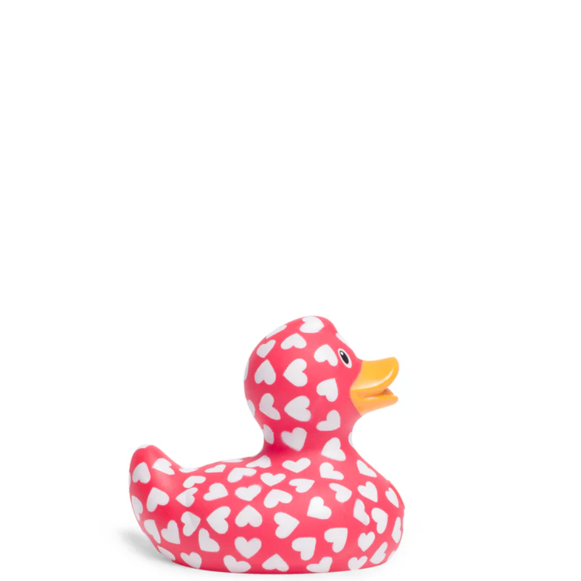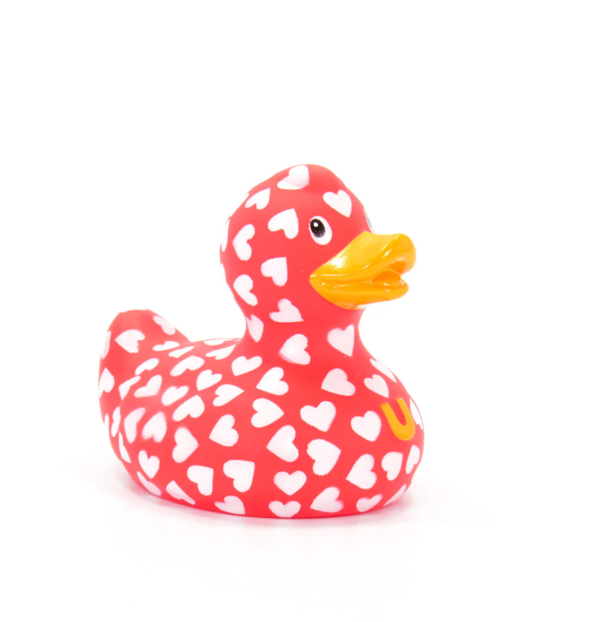 This rubber duck is designed with a strong red colour that immediately catches the eye. The design is reminiscent of classic Valentine's Day motifs, making it a fitting gift for someone you love. The white hearts give the sweet duck a loving look. The little red rubber duck with white hearts is a cute accessory that brings love and joy. It is a timeless and uncomplicated element that gives every bathroom a romantic touch. Whether as a gift or as a decorative element, this rubber duck is sure to win many hearts.