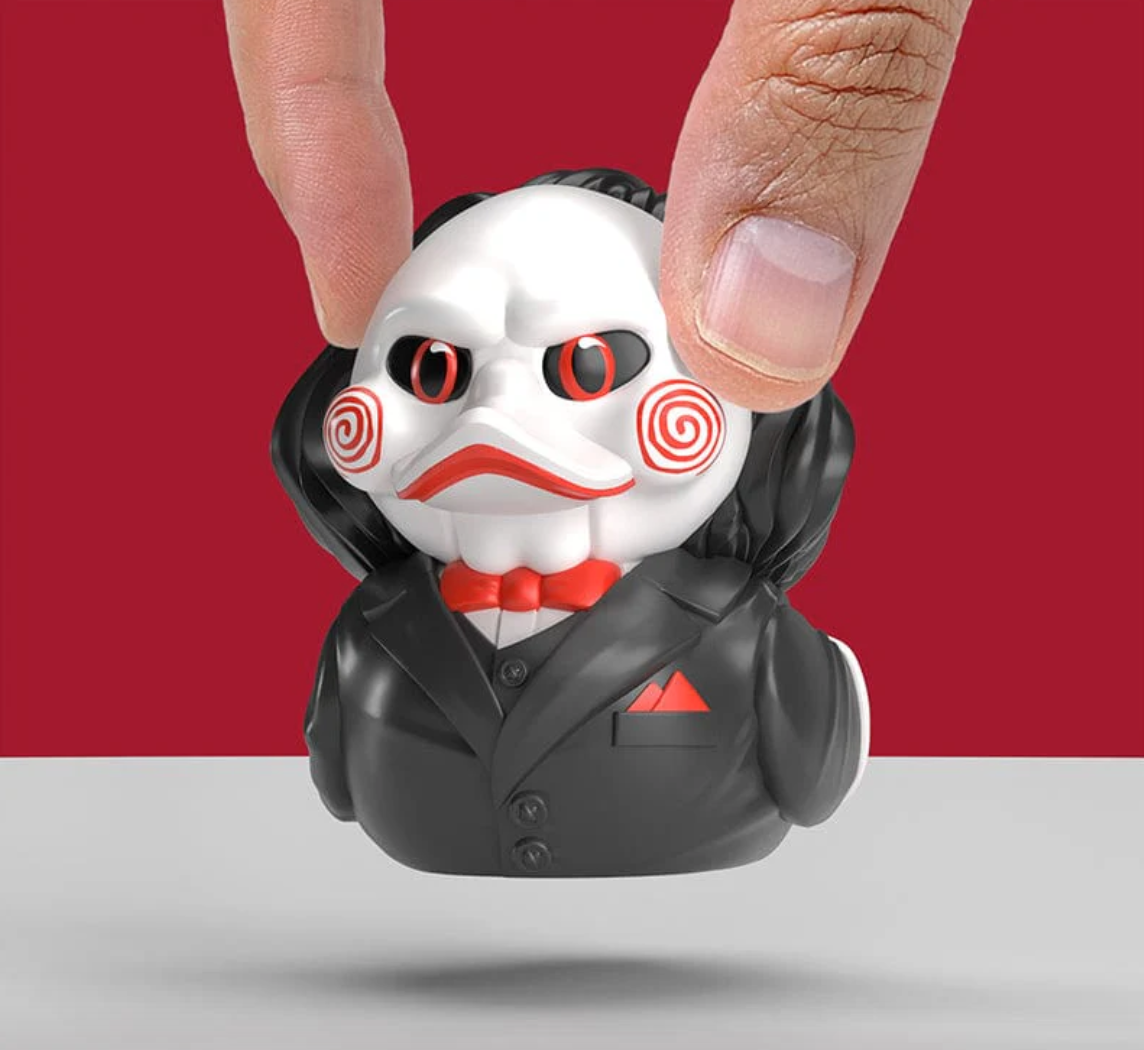 Game over? Not quite. The chilling presence of Billy the Puppet shrinks down to an adorably eerie size in this officially licensed Mini TUBBZ! With his signature tuxedo, red bow tie, and those unmistakable spiralled cheeks, this tiny terror is ready to take his place in your collection – all whilst sat inside his own mini themed bathtub. Whether you're a horror fanatic or a devoted Saw fan, this quacking little menace is a must-have.