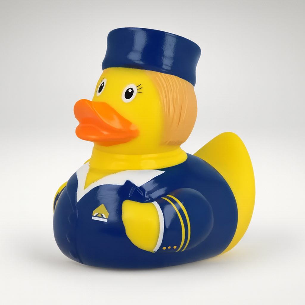 Embark on a high-flying adventure with the Jet-Setter Stewardess Rubber Duck from Duck World! Clad in a smart uniform with a friendly smile, this rubber duck is ready to welcome you aboard your next bath time journey. Perfect for aviation enthusiasts, travelers, or as a tribute to the hardworking cabin crew, it makes for a thoughtful gift or a fun addition to any duck collection. Let the Jet-Setter Stewardess Duck elevate your spirits and add a touch of worldly charm to your day.
