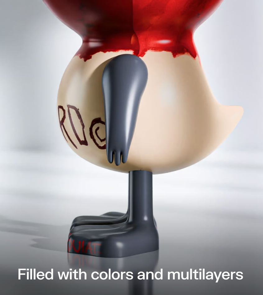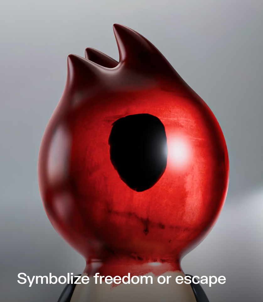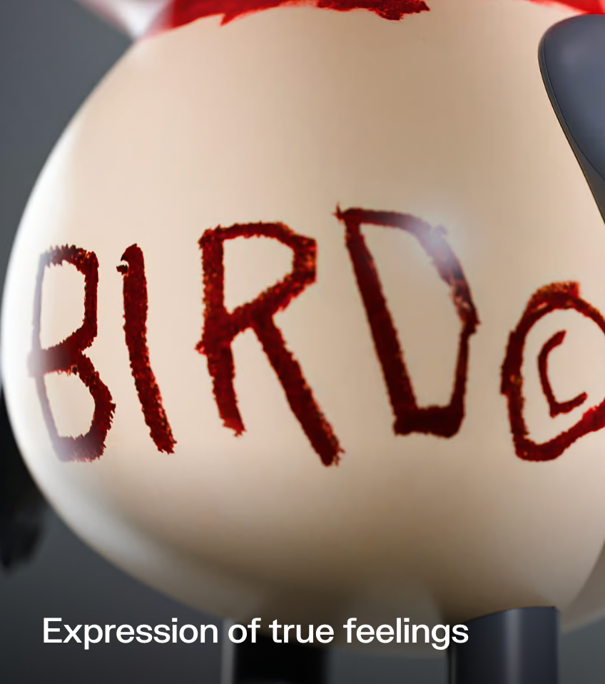 Birds are a common motif in his art, they symbolise freedom or escape. For TUD it is an expression of true feelings and contiguity with your own flaws.