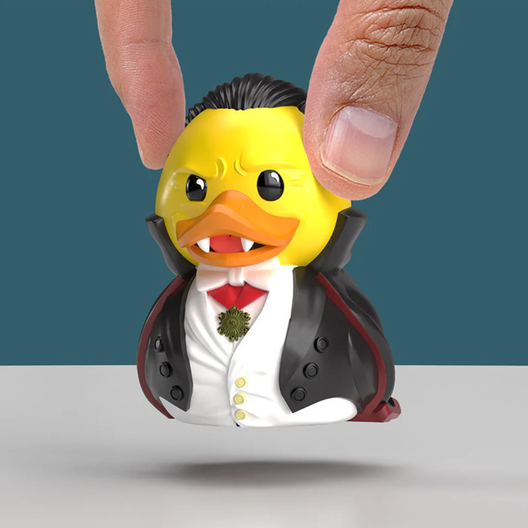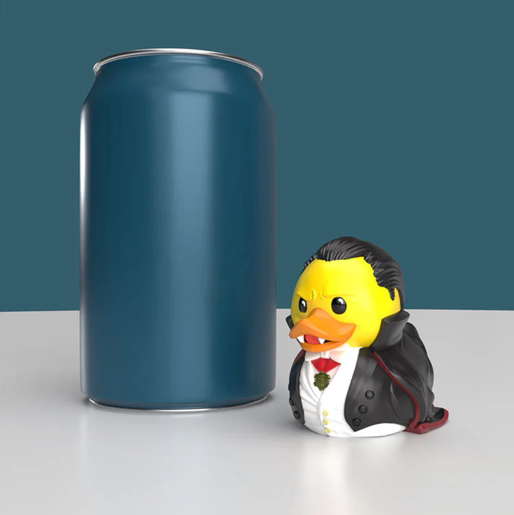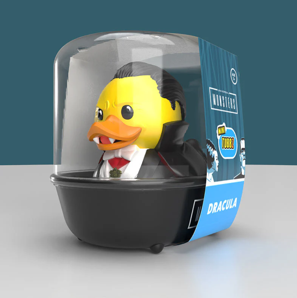The Prince of Darkness has taken a new form… and he’s ready to quack eternal! This officially licensed Mini TUBBZ transforms Universal Pictures’ iconic Dracula into a pint-sized vampire duck. Cloaked in his signature high-collared cape with a piercing gaze that could mesmerize any mortal, this tiny terror is ready to take his place in your horror collection. Presented in his own mini themed bathtub, he’s a must-have for classic monster fans!